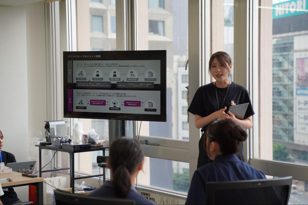 他社事務所との違いや実際の事例を交えながら、クリエイターの夢を市場の価値へ転換していくためのプロセスを紹介しました。現場で活躍されているエージェント(=マネージャー)のクリエイターとの関わり方や役割についてもお話ししました。